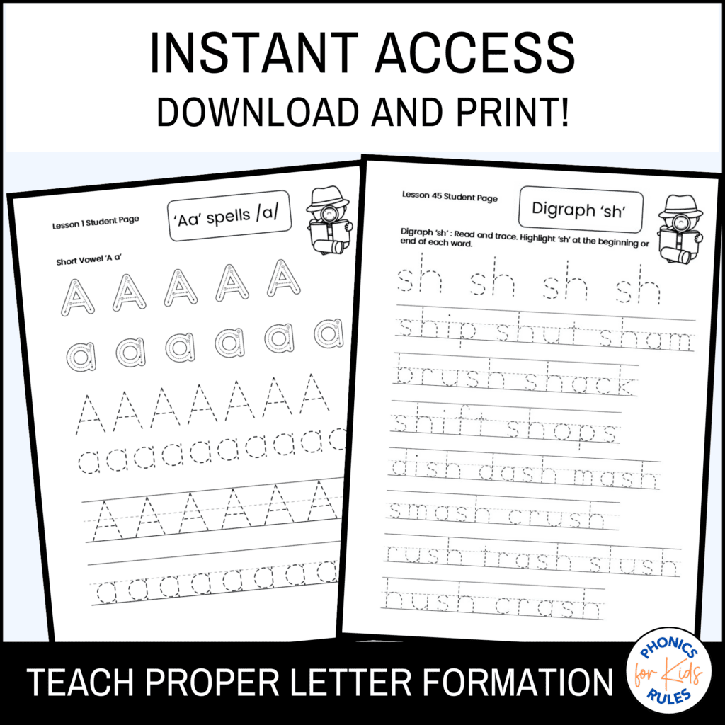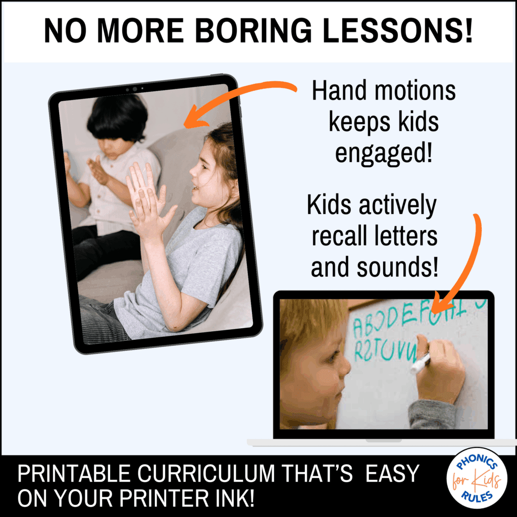 Get both tutorials and printable Kindergarten phonics curriculum in one package at checkout.